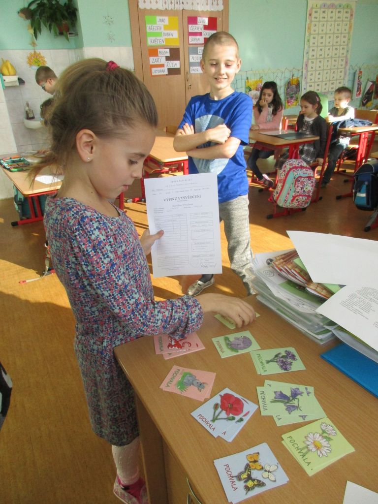 První pololetí uběhlo jako voda a po půlroce více či méně usilovné práce dostali také žáci naší školy pololetní vysvědčení. Nejvíce se asi těšily děti v první třídě, které dostaly vysvědčení vůbec poprvé.