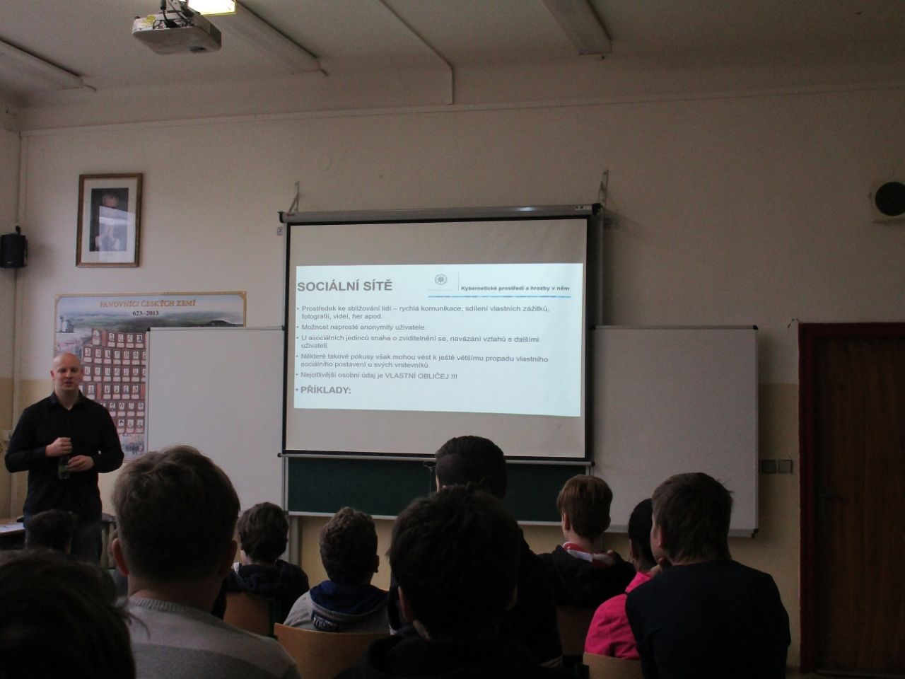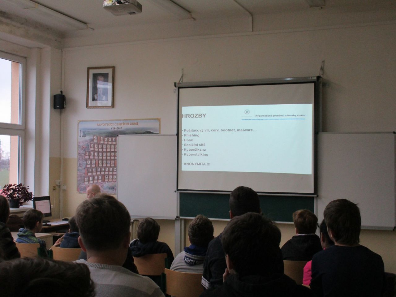 Žáci 6.-9. třídy měli v listopadu přednášku o kyberprostoru zaměřenou především na nebezpečí, která ve světě internetu mohou na každého čekat.