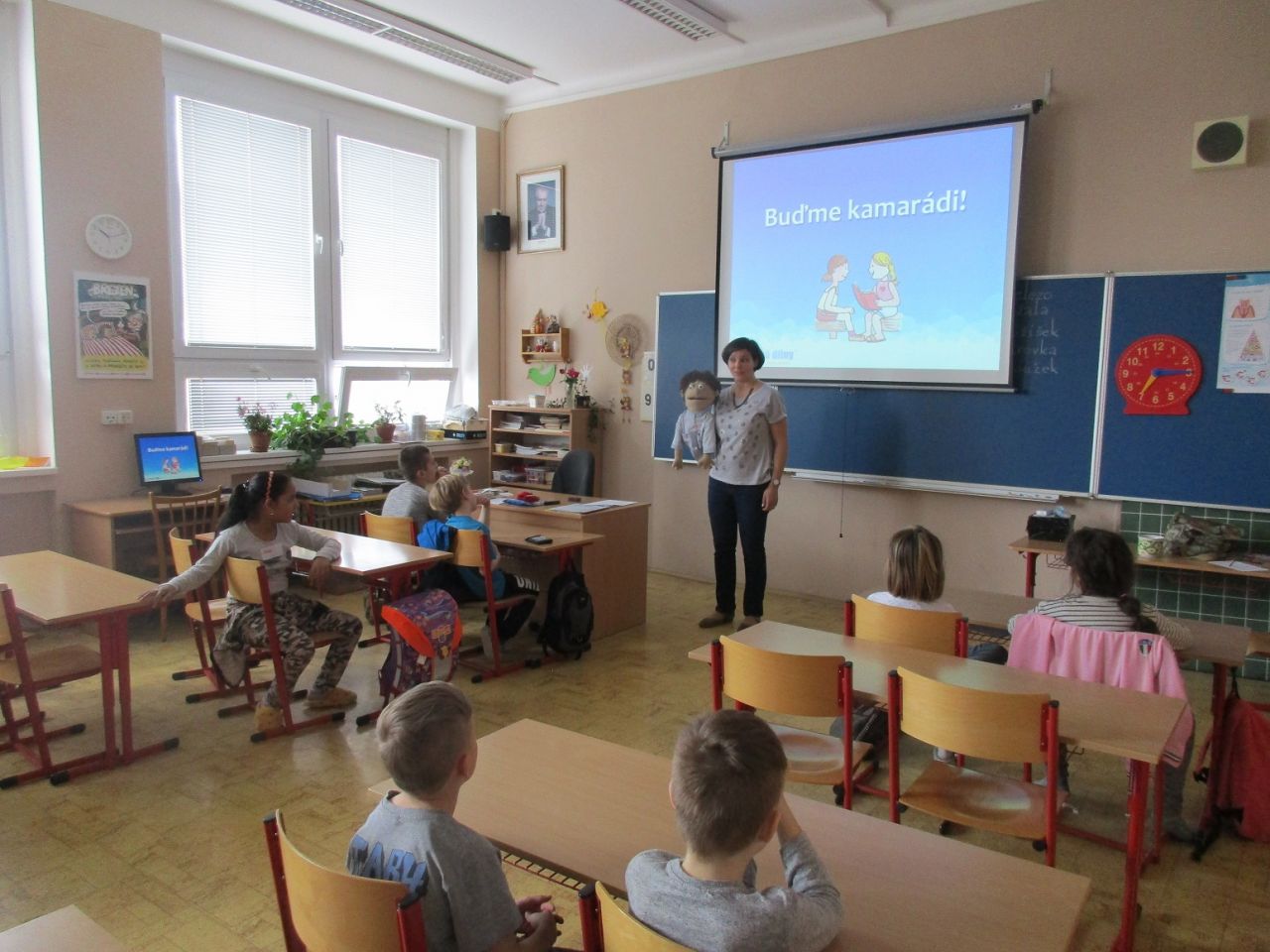 Ve středu 20. března se ve 2. třídě uskutečnil preventivní program "Buďme kamarádi". Děti provázela programem velká maňásková loutka, se kterou si děti povídaly o kamarádství a hrály si, jak správně reagovat na ošklivé chování. Společné hry mají děti povzbudit k vzájemným pozitivním vztahům.