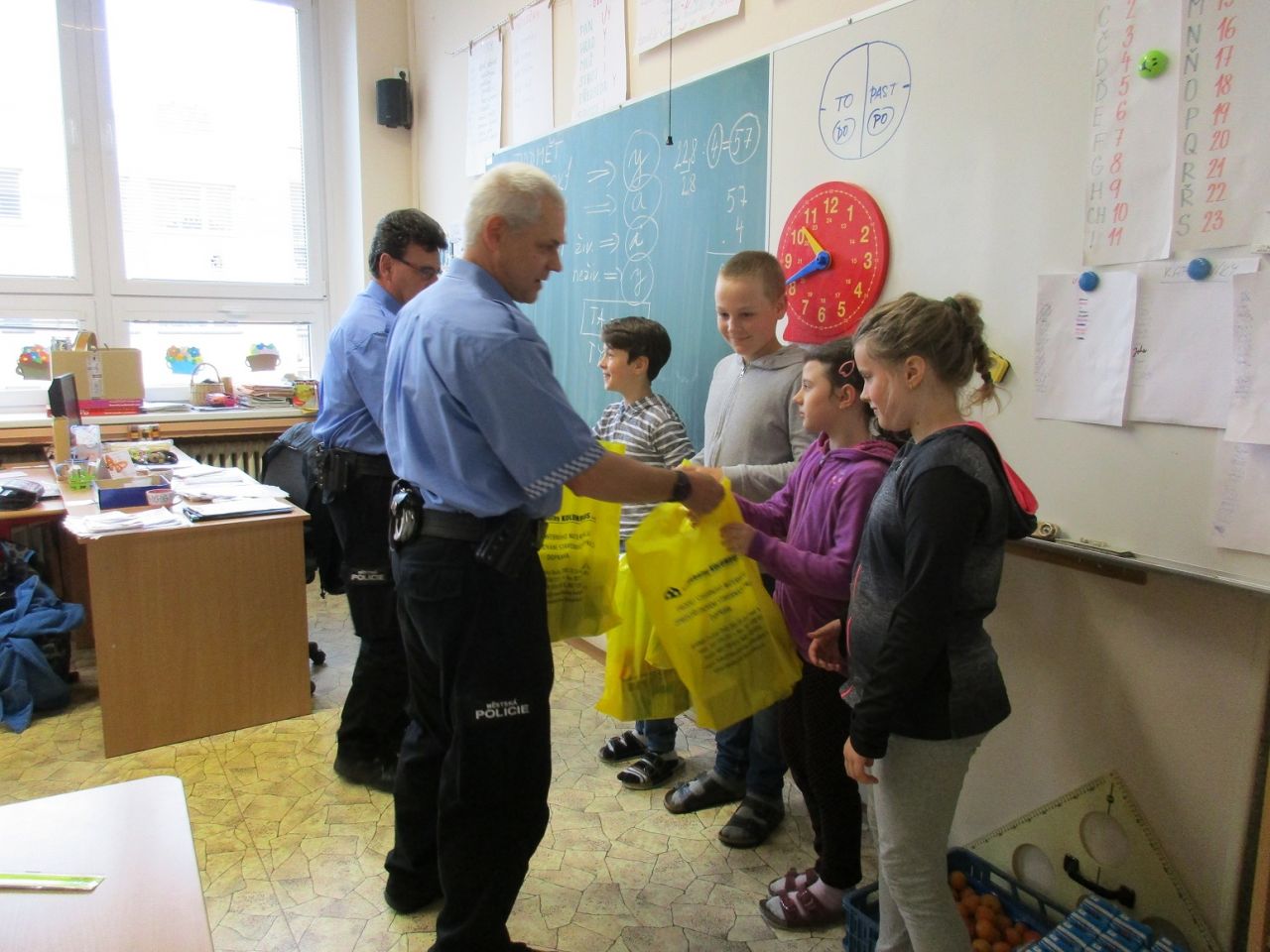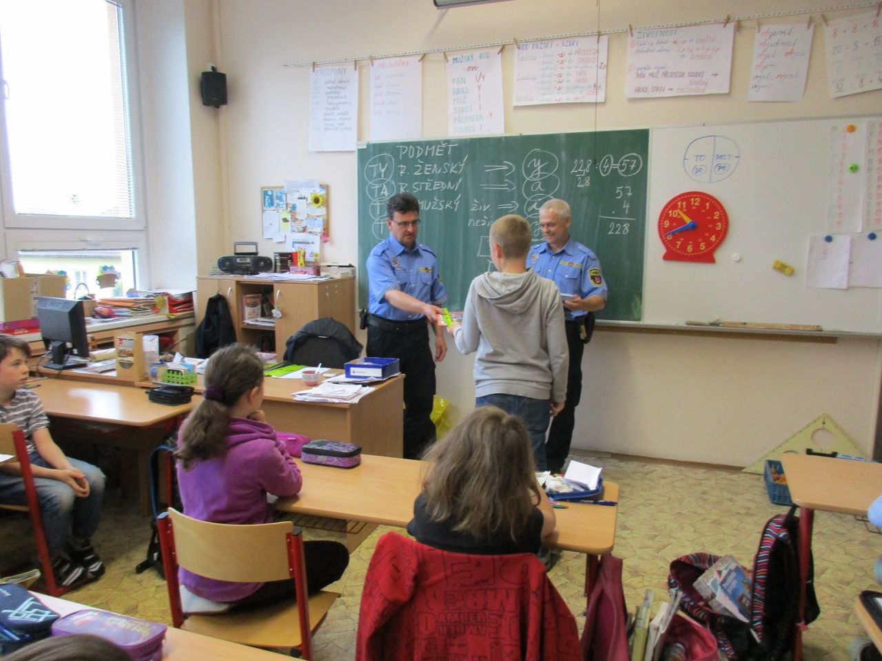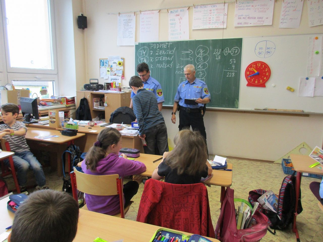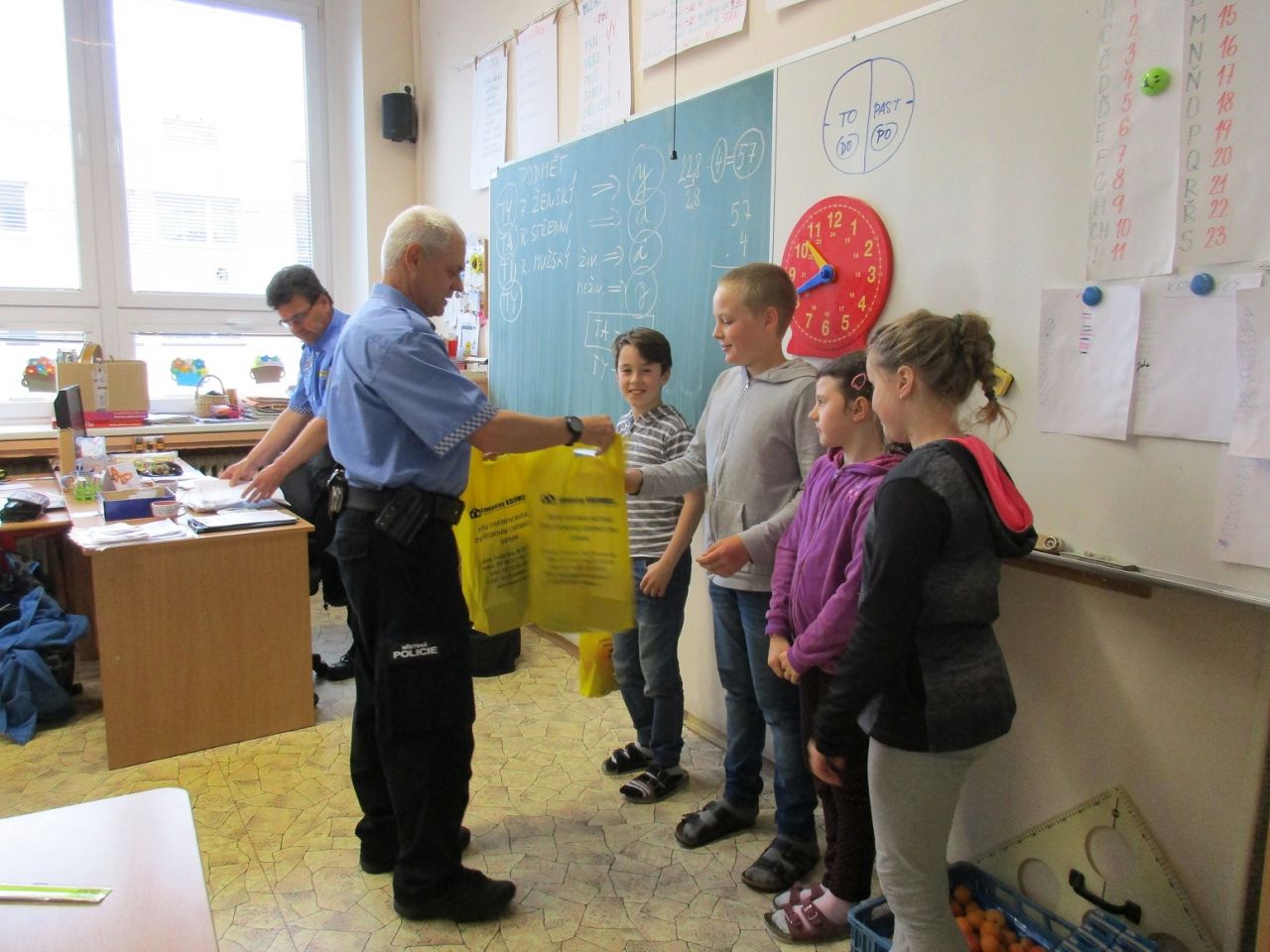 Ve druhé polovině května dokončili žáci 4. třídy celoroční kurz dopravní výchovy. Po dvou návštěvách na dopravním hřišti ve Zruči nad Sázavou přijeli tentokrát policisté za žáky do naší školy, aby ověřili jejich znalosti v závěrečném testu. Většina žáků v tomto testu uspěla a získala Průkaz cyklisty.