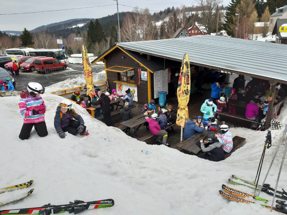 Z lyžárny jsme opět vyndali naše "prkýnka" , připnuli je na nohy a hurá na sjezdovku. Sluníčko se dnes schovalo za mraky, ale náladu nám nezkazilo. Nikdo z nás už není začátečník, všichni jezdíme jako draci. Každý z nás má svůj osobitý styl při sjezdu na lyžích či na snowboardu, ale všechny nás to moc baví a prý je na nás i docela pěkný pohled. Líbí se nám i na penzionu a doufáme, že má pevné základy, neb po návratu ze sjezdovky máme stále dost energie. A ta nám vydrží až do večera, bavíme se společně při hraní her a čekáme netrpělivě na pokyn, kdy můžeme konečně přinést repráky a pustit ploužáky. No a pak už jen smlouváme - ještě tři, ještě jednu, už jenom poslední .... jenže ti učitelé nic nevydrží a chtějí strašně brzy spát, tak my prý musíme taky.