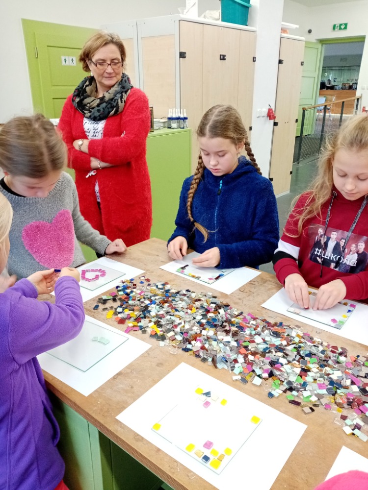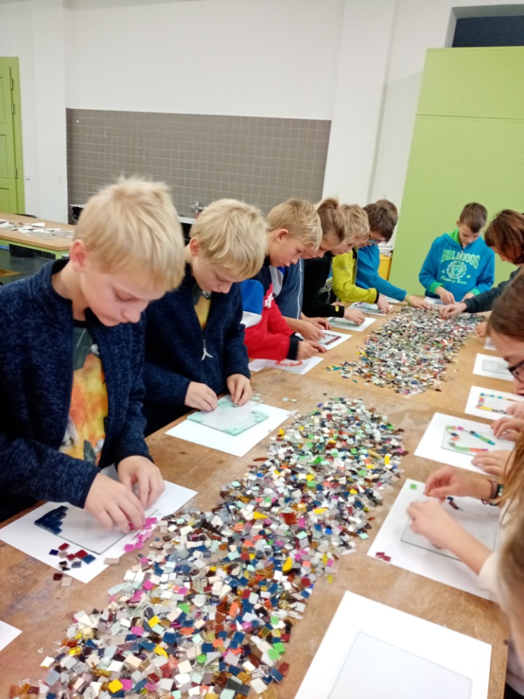 Slyšeli o historických souvislostech a postavení českých sklářů ve světě. Poté následoval workshop, kde si vyzkoušeli roli návrháře při tvorbě vlastní mozaiky a pískované skleničky.