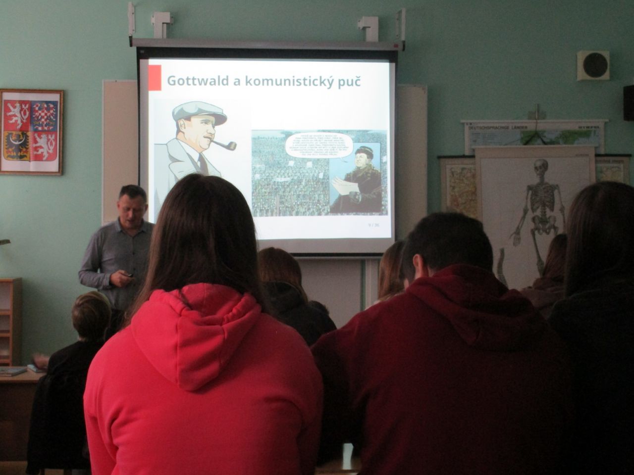 Také v letošním roce 2019 si připomínáme některé významné události našich dějin, které mají kulaté výročí. Na podzim to bylo především 30. výročí sametové revoluce. Proti minulému školnímu roku, kdy jsme k 100. výročí vzniku Československé republiky připravili velký projekt pro celý druhý stupeň, jsme připomínku tohoto výročí pojali "komorněji". Především jsme se tentokrát omezili pouze na žáky 8. a 9. třídy. Zájemci z jejich řad se mohli zapojit do soutěže ve znalostech našich dějin v letech 1948-1989. Nejvíce jsme se v soutěži zaměřili na sametovou revoluci a na události z konce roku 1989. V 8. třídě byl nejlepší David Vršťala. Za ním se umístily Pavlína Kupsová a Barbora Voslářová. V 9. třídě zvítězil Filip Kakos těsně před Vítkem Hromasem a Ondřejem Blažkem. Dva dny před 17. listopadem, který je u nás státním svátkem, se žáci 8. a 9. třídy zúčastnili besedy o sametové revoluci s panem Zdeňkem Ležákem, který je autorem komiksu o období komunistického režimu a o sametové revoluci.