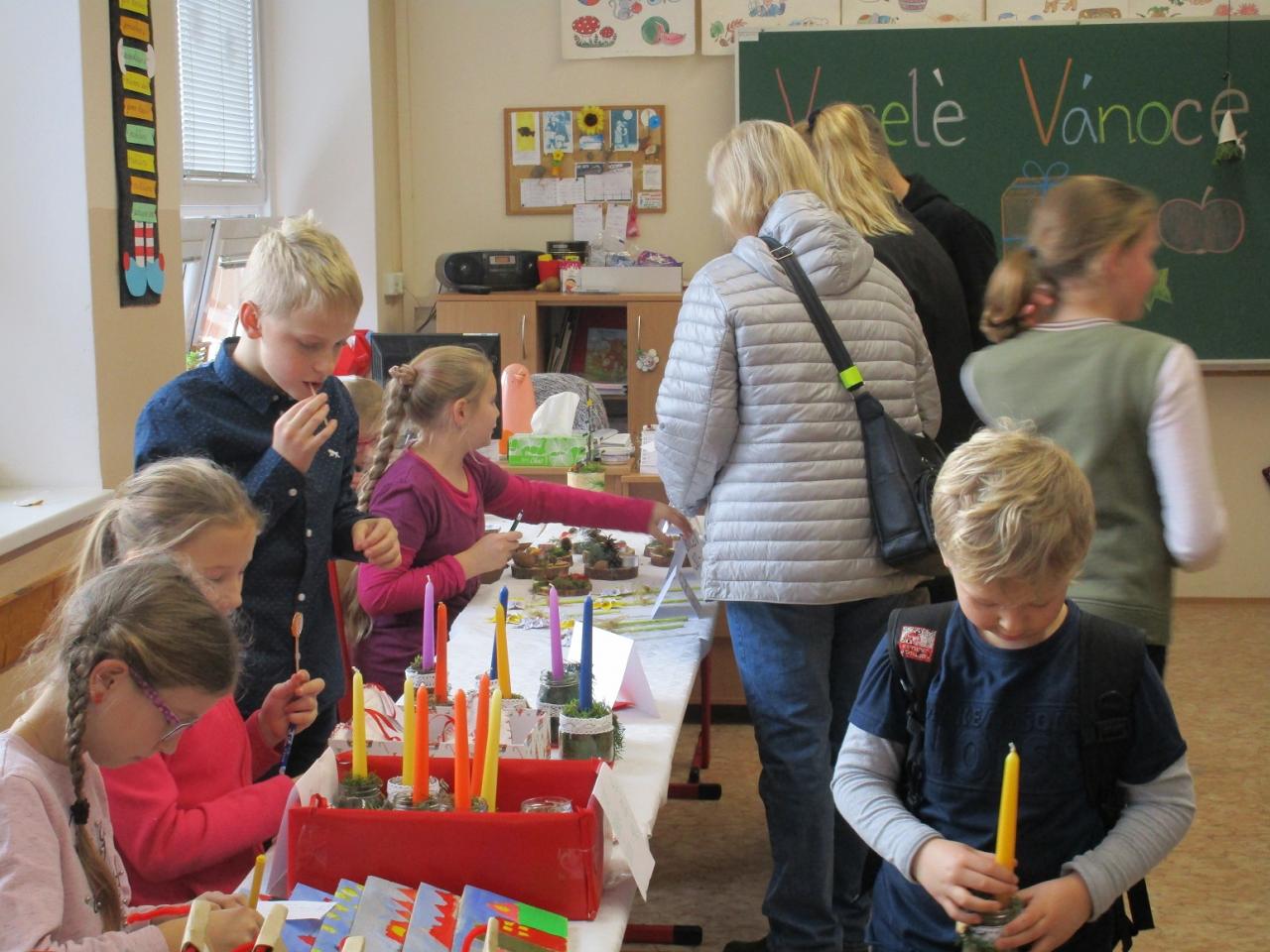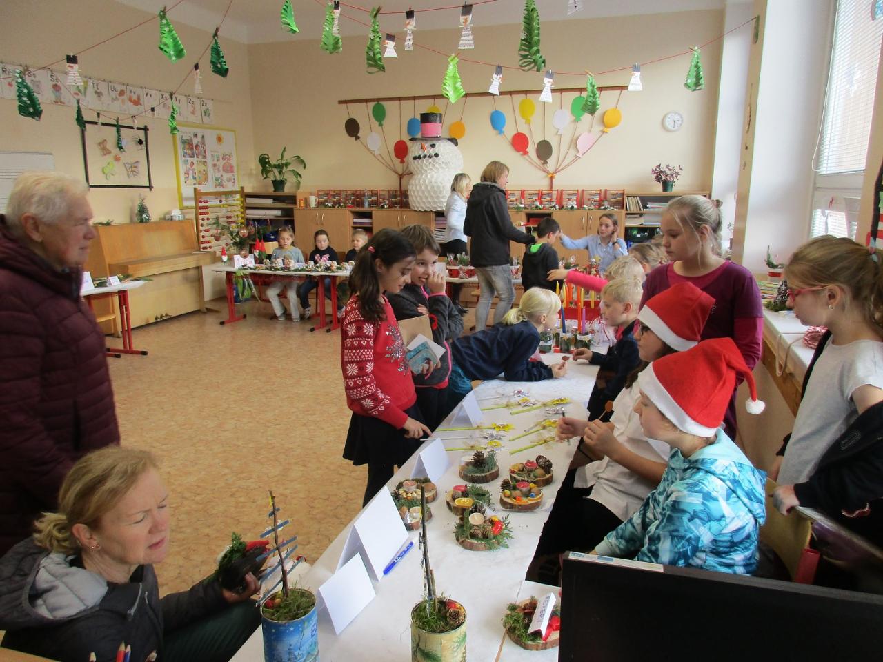Stalo se již tradicí, že koncem adventního období připravují žáci a učitelé naší školy Školní vánoční trh. Tento rok připadl na úterý 17. prosince. Přípravy probíhaly ale již dlouho předtím. Nakonec vše proběhlo podle připraveného scénáře a návštěvníci trhů, kterých nebylo málo, si mohli vybrat z širokého sortimentu vánočního zboží (tradiční i méně tradiční vánoční ozdoby, perníčky, svícny, …). Nebo si mohli pochutnat na drobném občerstvení, zaposlouchat se do vánočních koled, potkat známé, zkrátka nasát vánoční atmosféru. Trh byl jako v minulých letech doplněn o prodejní výstavu Včelího světa z Hulic. Všem zúčastněným děkujeme a budeme se těšit příští rok na shledanou.