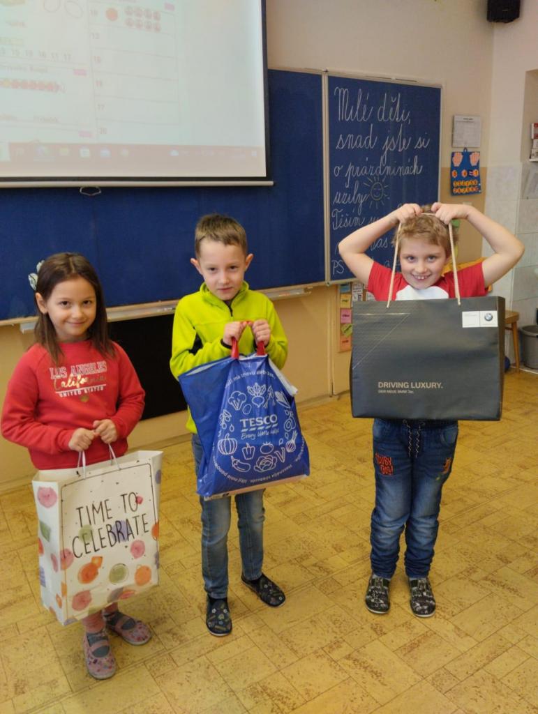 S nápadem zorganizovat Den bez tašek přišli zástupci Žákovského parlamentu. Kreativnost žáků neznala mezí. Do školy přišli žáci s košíky různých tvarů a rozměrů, s kufry a nechyběl ani velký nákupní vozík či malý dětský kočárek.
