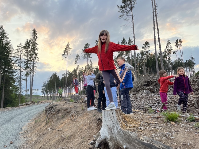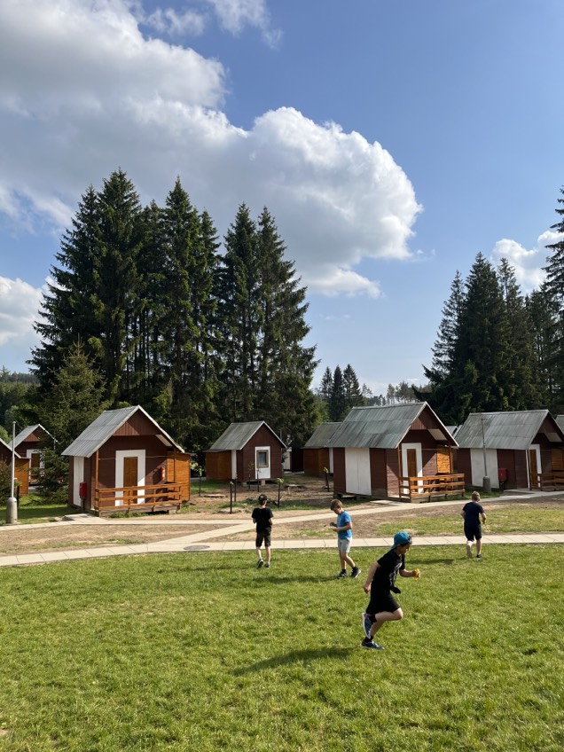 Po bezproblémové cestě jsme se ubytovali, rozmístili své vlajky a honem do bazénu. Po večerním bowlingu jsme den završili procházkou k lesu a už jsme jen zalezli a šli spát.