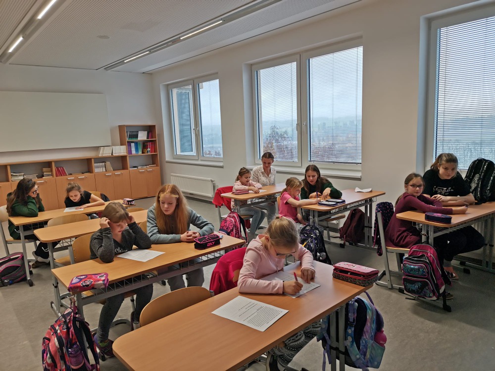 V listopadovém projektu zvaném „Can I help you in English“, deváťáci strávili jednu vyučovací hodinu ve 3.třídě. Každý žák si vybral jednoho třeťáka a celou hodinu mu dělal „učitele – tutora“ anglického jazyka. Milí deváťáci, vedli jste si skvěle a všem třeťákům se tato neobyčejná hodina líbila.
