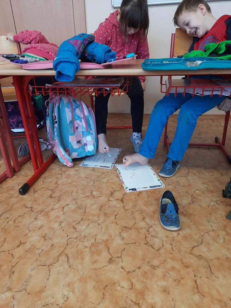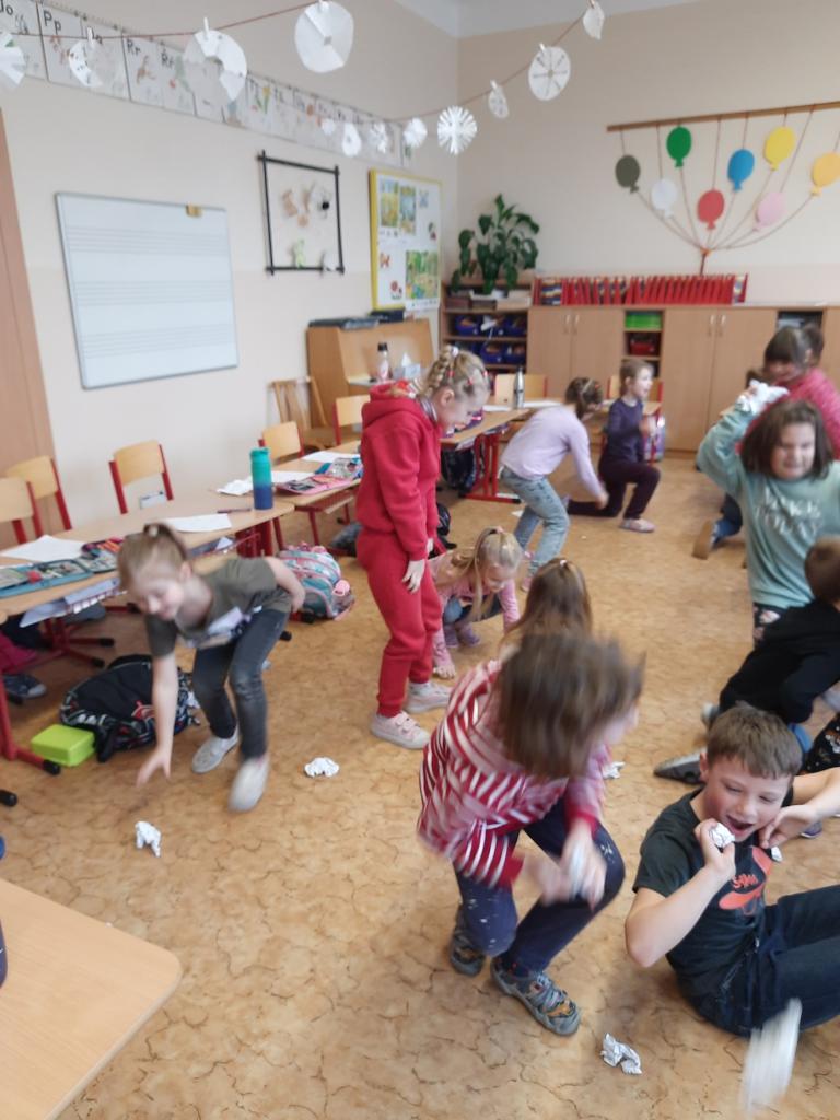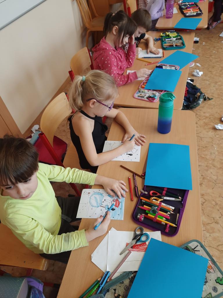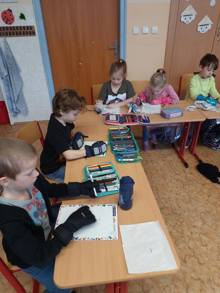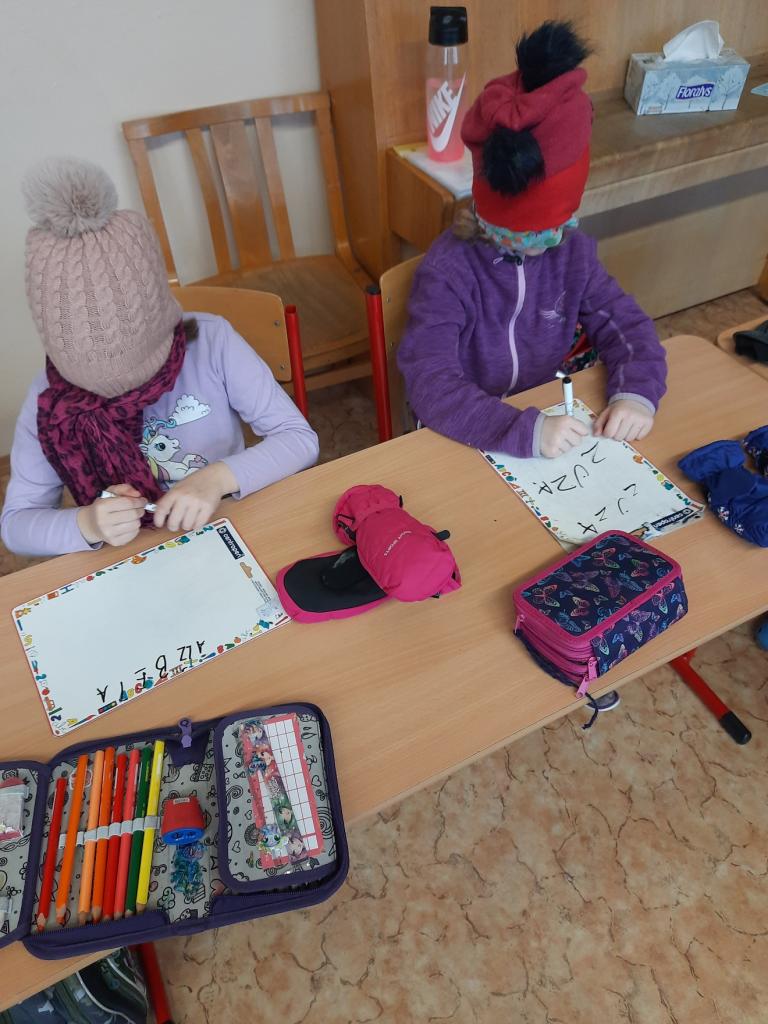 27.2. jsme si udělali zimu ve třídě a dokonce proběhla i „koulovačka“. V poledne stálo ve třídě 6 sněhuláků. Vyzkoušeli jsme si psaní poslepu, bez rukou. K tomu všemu jsme stihli i počítat „ledové příklady“ a rozdělit slova na slabiky, rozstříhali jsme a opět složili sněhuláka.