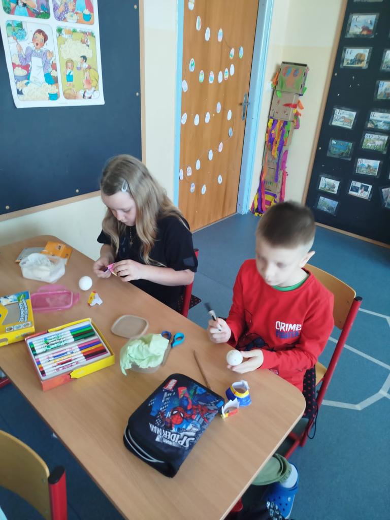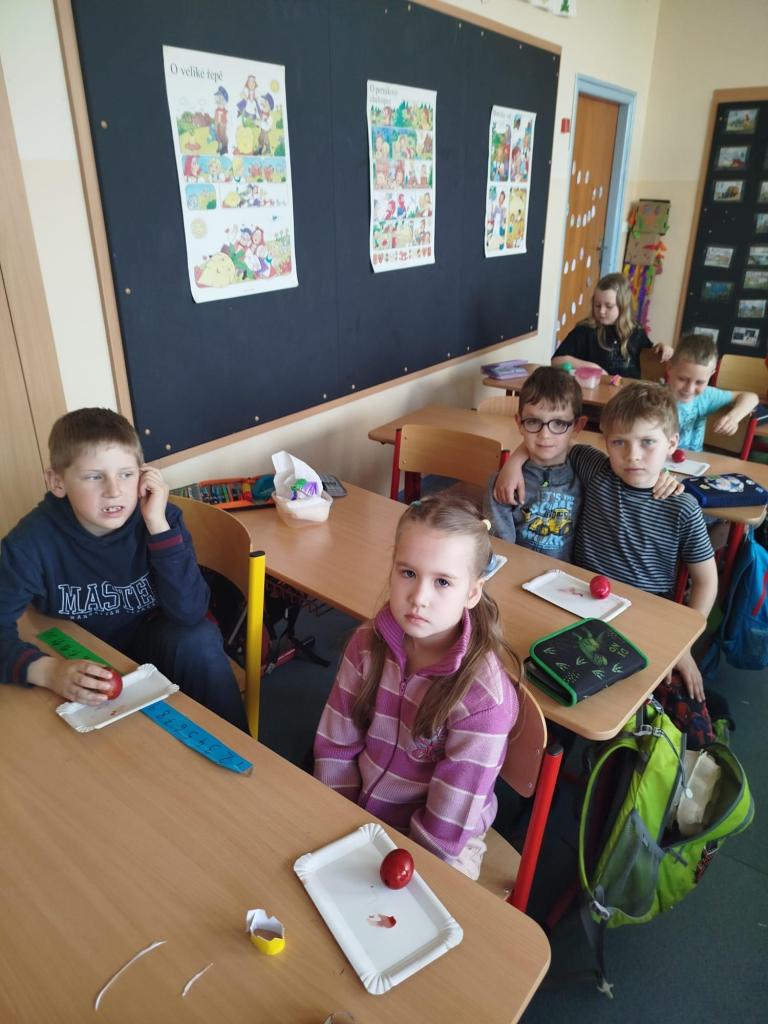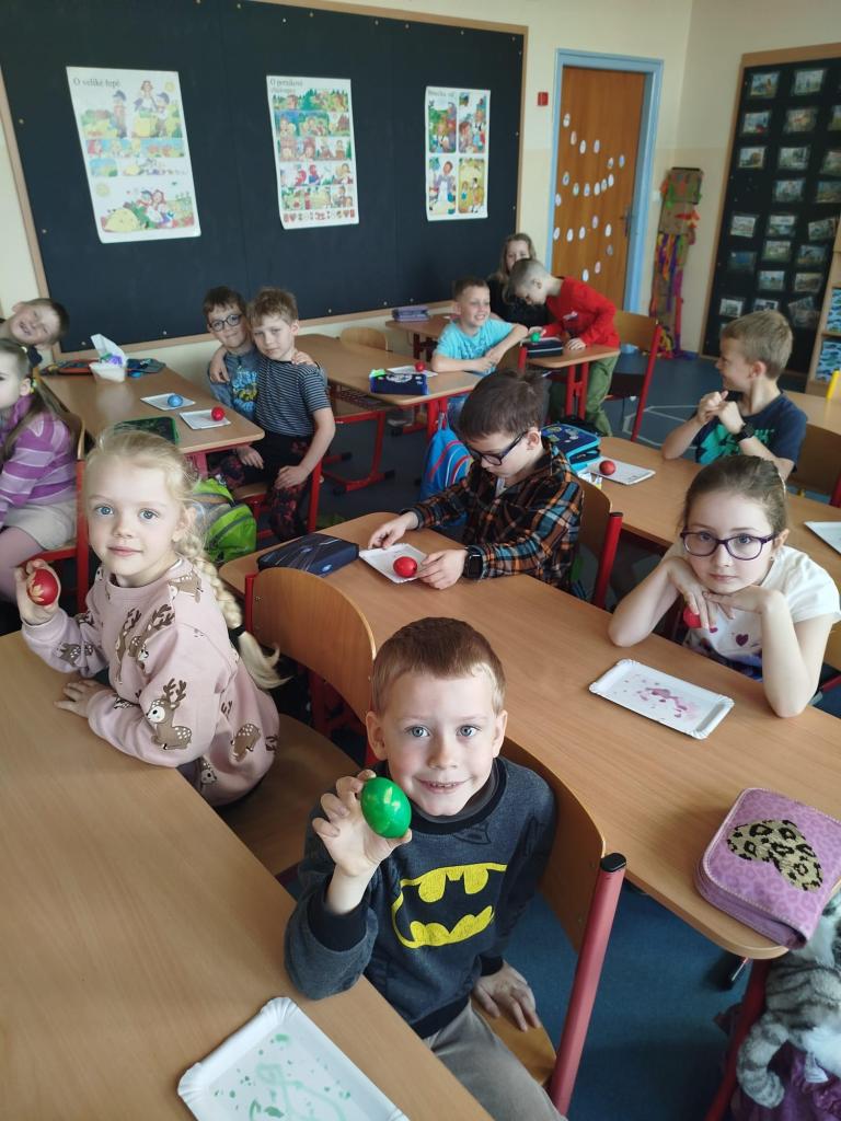 Poslední předvelikonoční den jsme začali barvením vajíček, pokračovali jsme pečením jidášů a končili jsme vybarvováním pracovních listů.