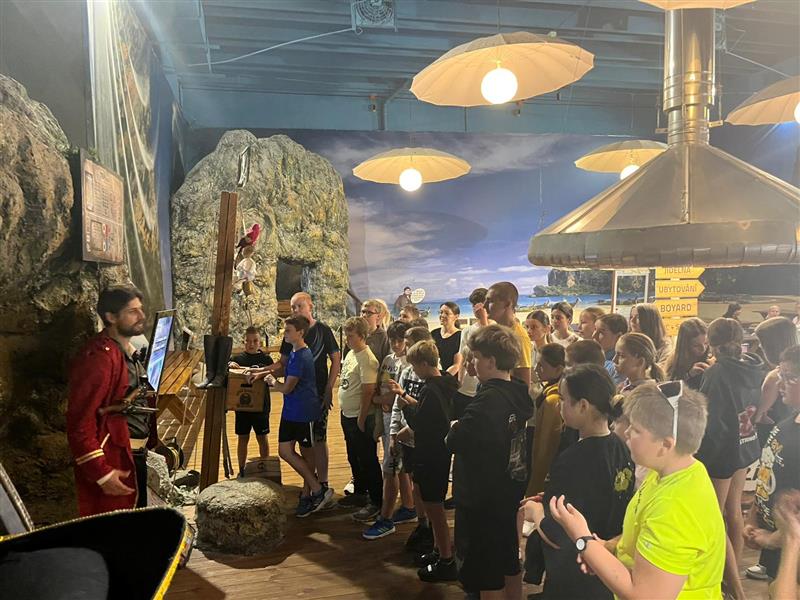 Žáci 6. a 8. třídy navštívili zábavně-adrenalinový areál TEPfactor v Chotilsku, kde na ně čekalo dobrodružství v prostředí pirátské jeskyně. V týmech plnili 25 úkolů, které prověřily jejich zručnost, sílu, logické myšlení, trpělivost a především schopnost spolupracovat.