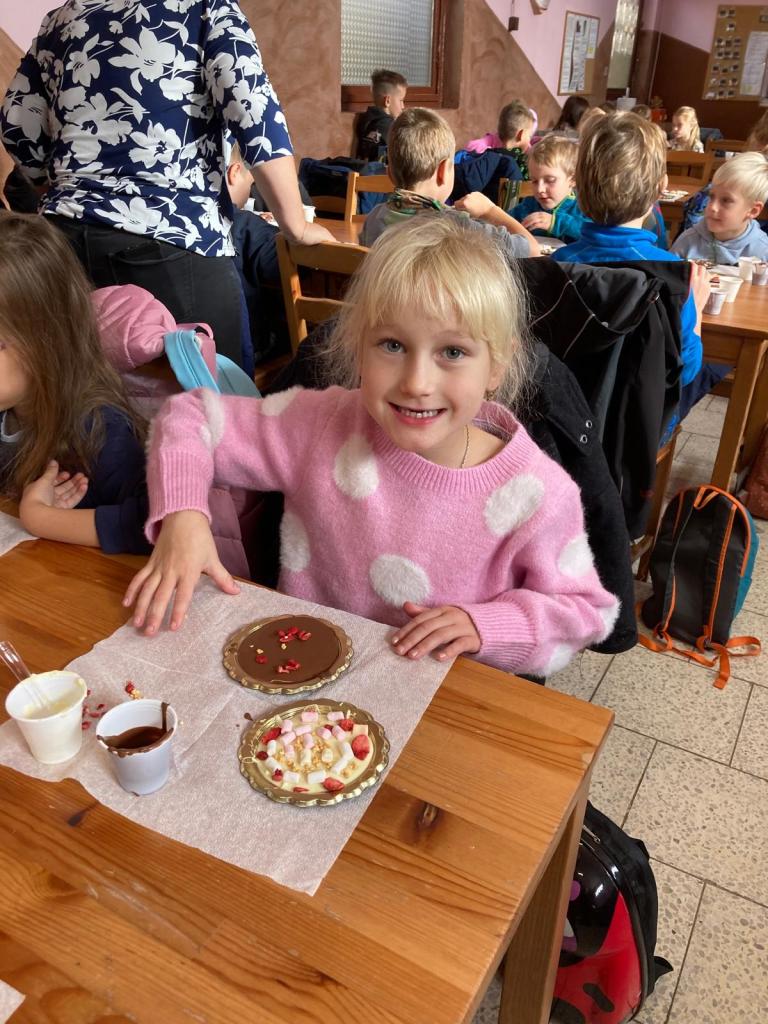 Prvňáčci vyrazili ve druhé polovině října na první výlet ve "velké" škole. Cílem jejich výletu byly Šestajovice. Navštívili místní čokoládovnu a svíčkárnu a měli také možnost vyrobit si drobné dárkové předměty. Domů si tak odvezli čokoládu, svíčku, mýdlo nebo vonnou sůl.