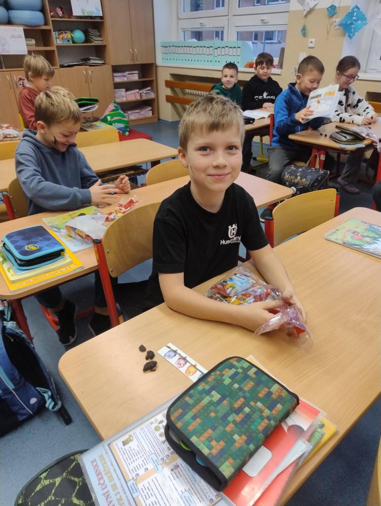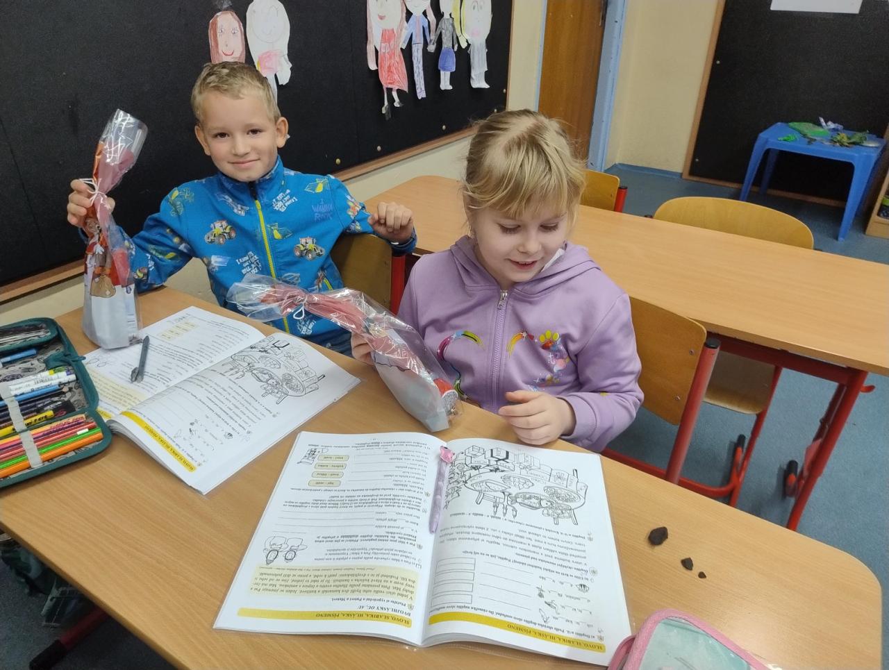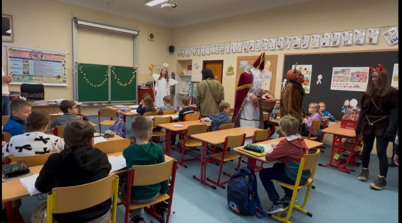 V předvečer svátku sv. Mikuláše zavítal do naší třídy Mikuláš, anděl a čerti. Čerti dělali pekelný rámus. Naštěstí tu byl i Svatý Mikuláš a anděl. Mikuláš pochválil hodné děti a pokáral hříšníky. Děti slíbily, že už nikdy, nikdy, nikdy nebudou zlobit a anděl je odměnil sladkou drobností.