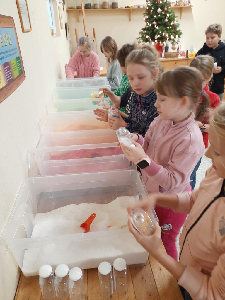 První prosincový den jsme strávili příjemné dopoledne v Šestajovicích. Obarvili jsme si svíčky, naplnili jsme dózu koupelovou bylinkovou solí a vyrobili plovoucí svíčky. V obchůdku jsme si nakoupili další výrobky z místní dílny. A ještě jsme si prohlédli zvířátka v jejich typických příbytcích.