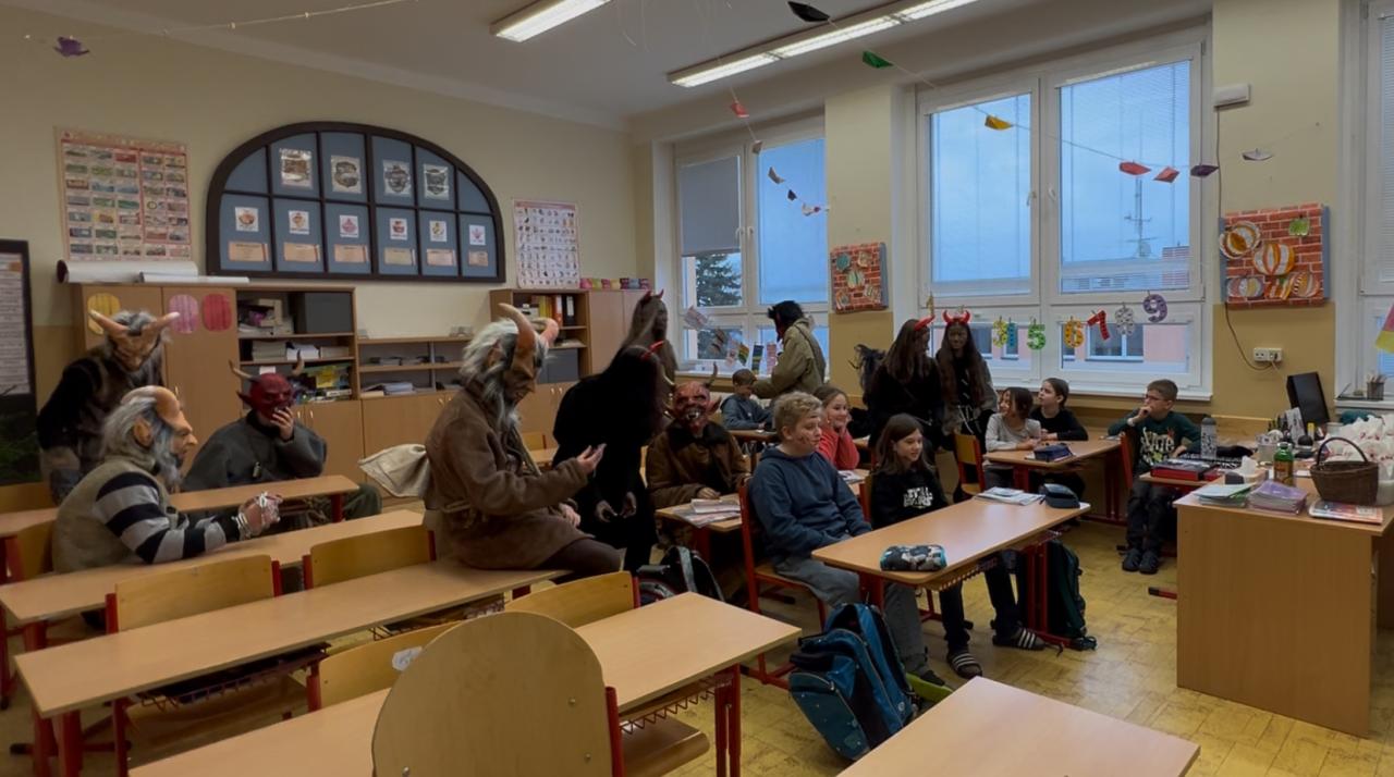Dnes naši školu navštívil Svatý Mikuláš se svojí družinou a dobře to dopadlo, rohatí čerti nakonec nikoho neodnesli. Někteří žáci byli sice pokáráni, ale naopak hodně žáků Mikuláš chválil. Nakonec všichni dostali malou odměnu.