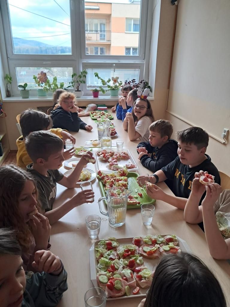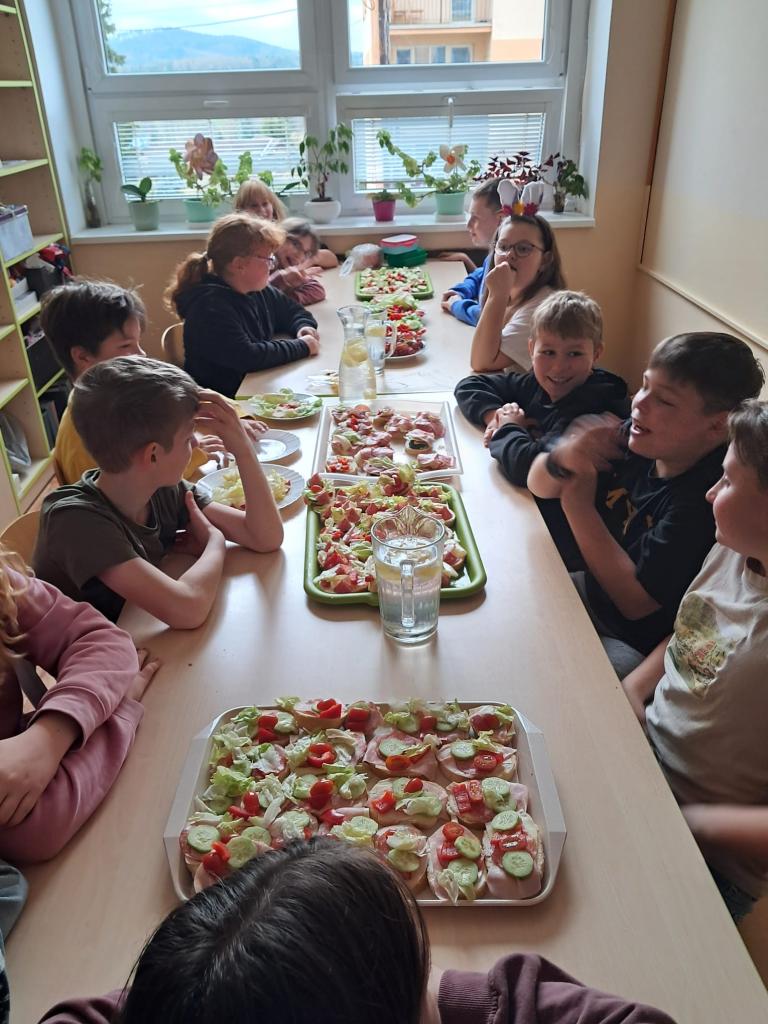 Abychom se naladili na nadcházející svátky, pustili jsme se společně do zdobení velikonočních vajíček. Každé vajíčko je originál a teď nám dělají radost při výzdobě naší třídy. Přitom všem jsme si ještě stihli připravit něco dobrého na zub. Přejeme všem krásné a veselé Velikonoce!