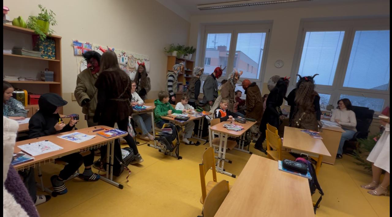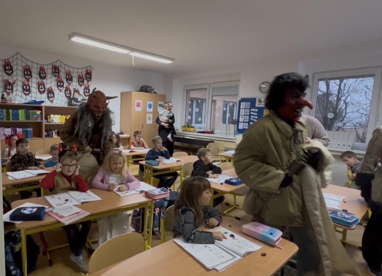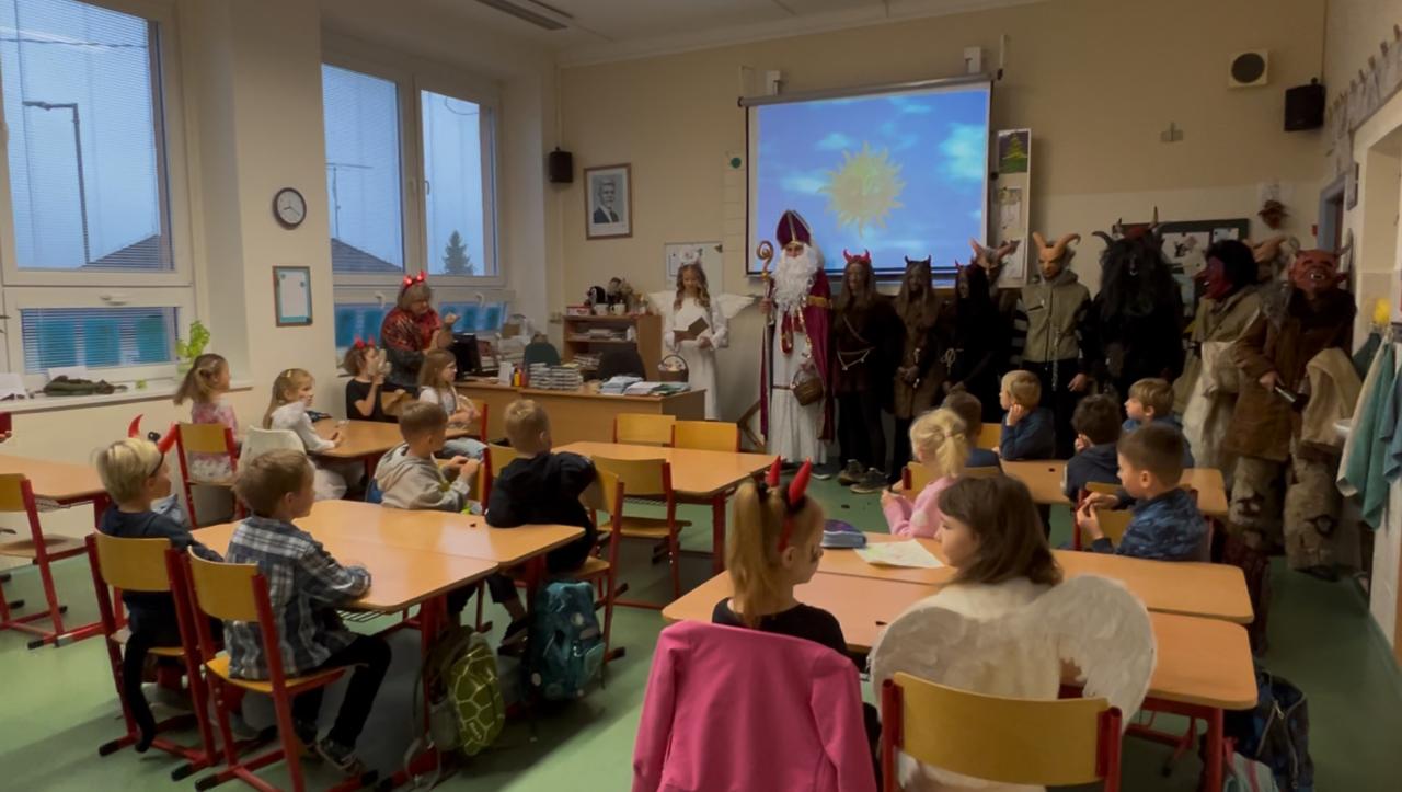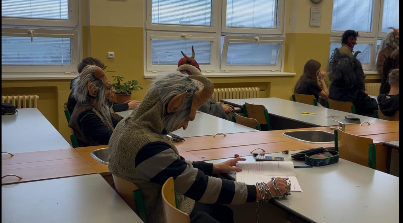 Nejstarší deváťáci vyrazili v podobě Mikuláše, andělů a čertů na obchůzku po třídách. Hříšníky chtěli odnést do pekla, někdy se to téměř podařilo, ale většinou Mikuláš chválil a naděloval sladkosti. Deváťáci se zhostili této nepsané povinnosti na jedničku.