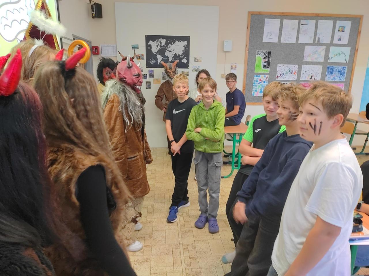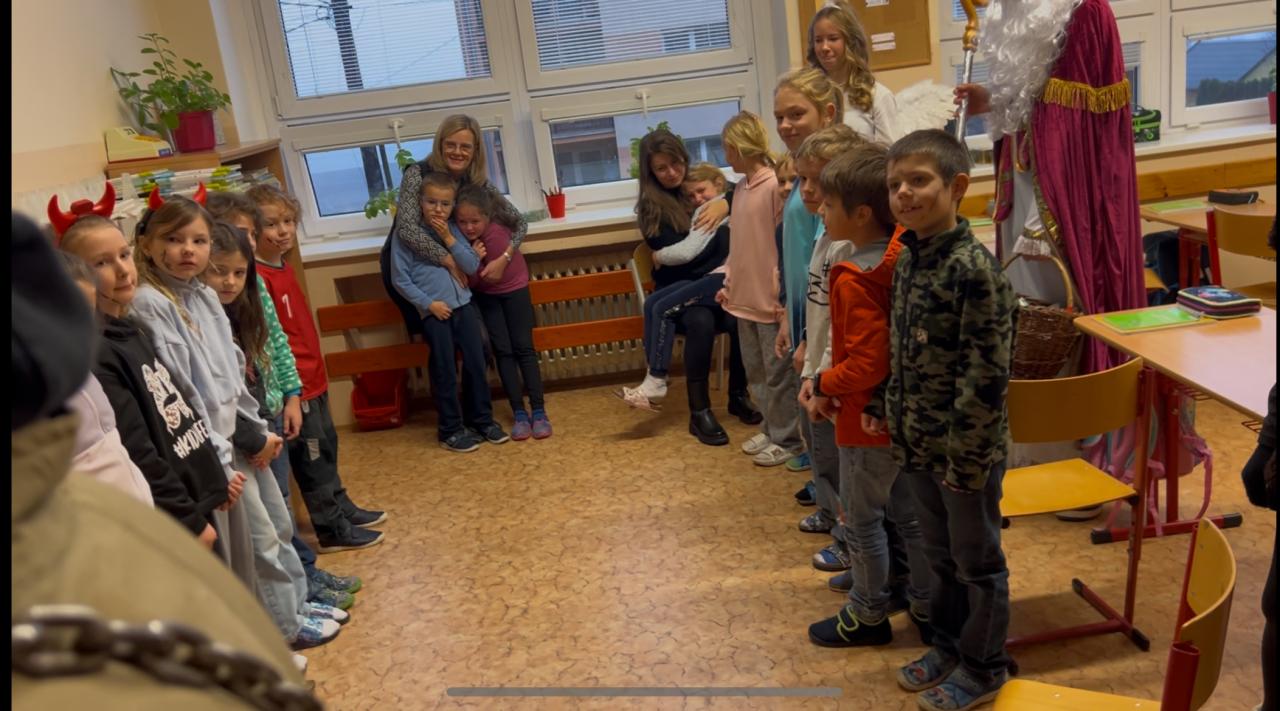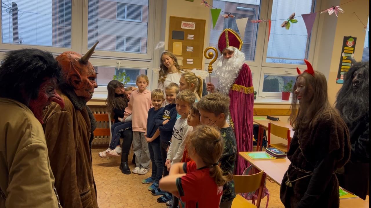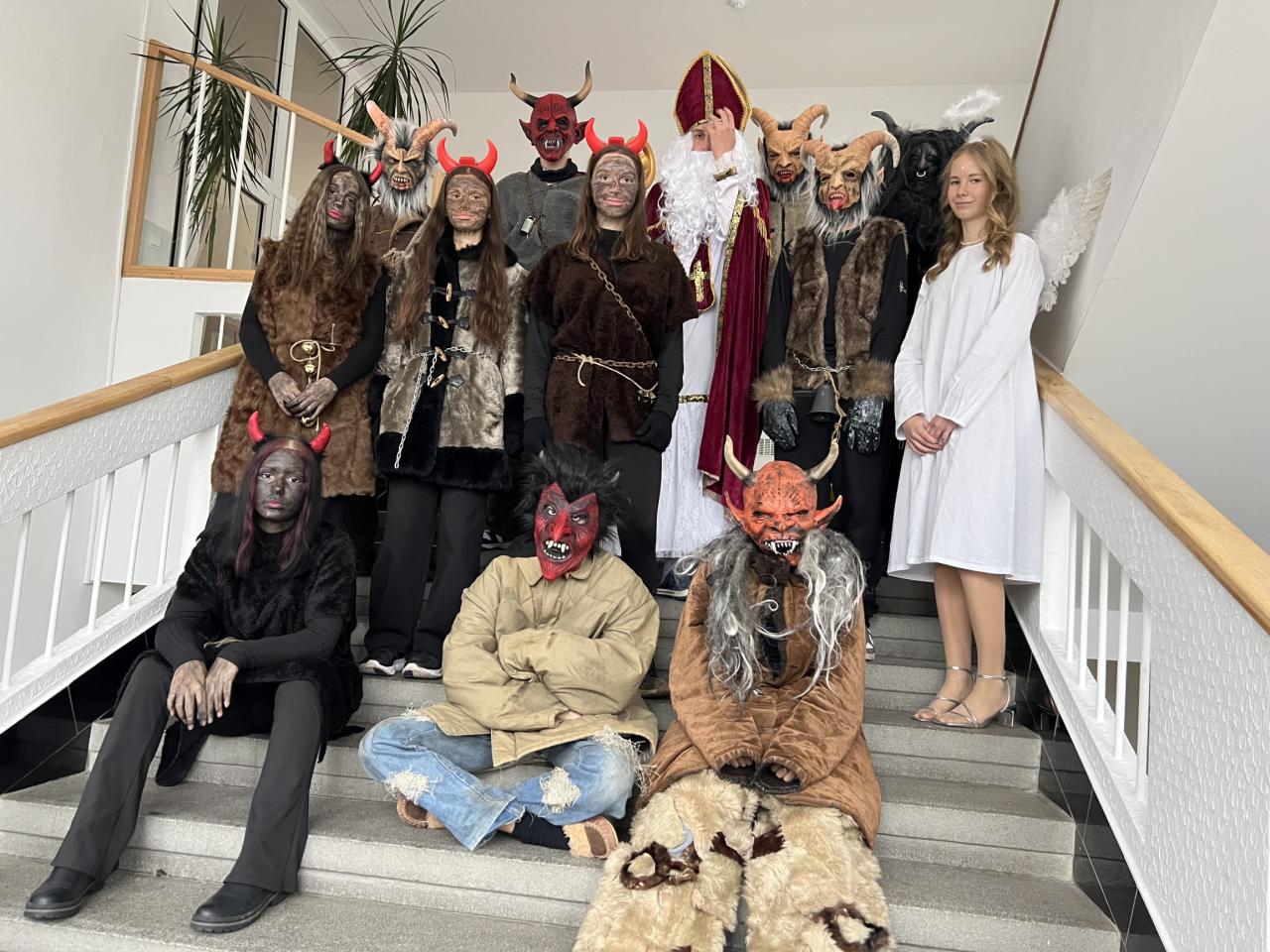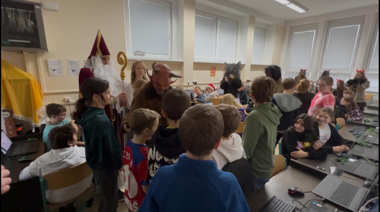 Nejstarší deváťáci vyrazili v podobě Mikuláše, andělů a čertů na obchůzku po třídách. Hříšníky chtěli odnést do pekla, někdy se to téměř podařilo, ale většinou Mikuláš chválil a naděloval sladkosti. Deváťáci se zhostili této nepsané povinnosti na jedničku.